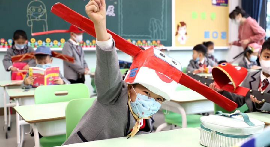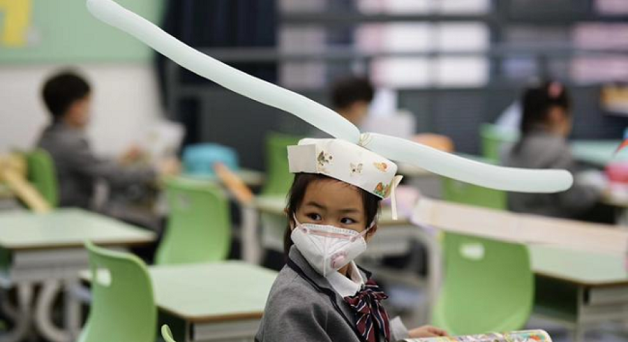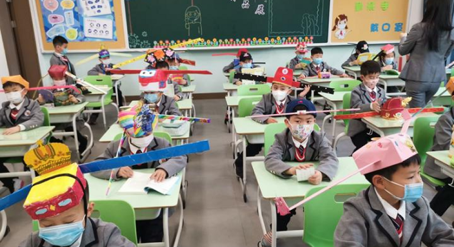 El 26 de abril, los niños de primer a tercer grado en Hangzhou volvieron oficialmente a las aulas. La Escuela Primaria Yangzheng actualmente solo ha habilitado cuatro clases, todas de primer grado. Todos los alumnos deben mantener una distancia segura, pero los niños de primer grado no tienen un concepto claro de lo que es "un metro" de distancia. Por ello, combinando las medidas clave del conocimiento de prevención de la epidemia y las características de los niños, nació la idea del "sombrero de un metro" en la escuela.
