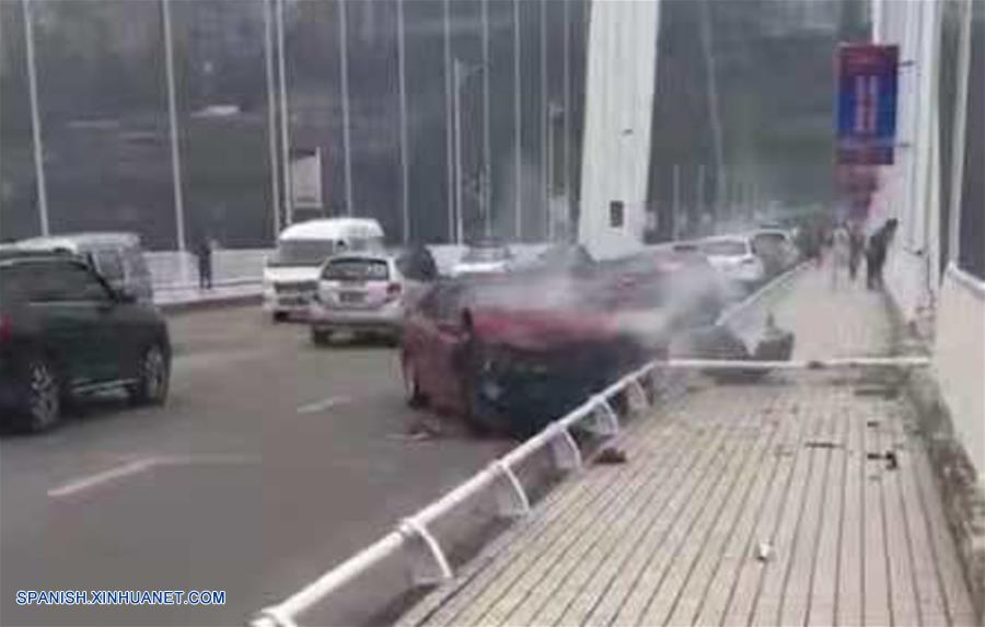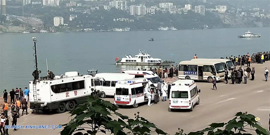 CHONGQING, 28 oct (Xinhua) -- Un autobús con una docena de pasajeros a bordo giró repentinamente hoy domingo hacia el carril contrario de la carretera y chocó contra un auto privado antes de caer en el río Yangtse en Chongqing, en el suroeste de China, dijo la policía local.