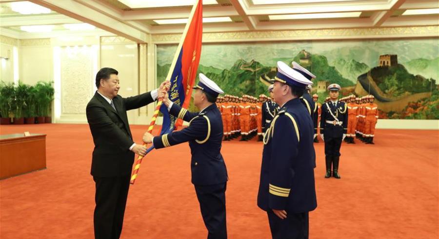 Xi Jinping entrega bandera a nuevo equipo nacional de bomberos y rescate