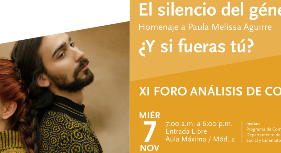 El Departamento de Comunicación Social y Cinematografía y el Programa de Comunicación Social-Periodismo de la Universidad Jorge Tadeo Lozano realizarán el próximo miércoles 7 de noviembre el XI Foro de Análisis de Coyuntura “El silencio del género, ¿Y si fueras tú? Homenaje a Paula Melissa Aguirre. El encuentro se realizará a partir de las 7:00 a.m. hasta las 7:00 p.m.en el Aula Máxima de la Universidad Jorge Tadeo Lozano.