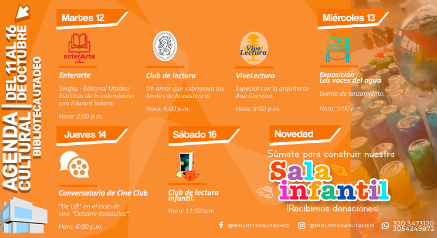 Agenda cultural de tu Biblioteca UTadeo de la semana del 11 al 16 de octubre.