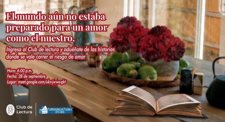 DestacadasClub de lectura Compartir en Miércoles, Septiembre 22, 2021Club de lecturaTe esperamos el martes 28 de septiembre a las 6:00 PM a través de meet.