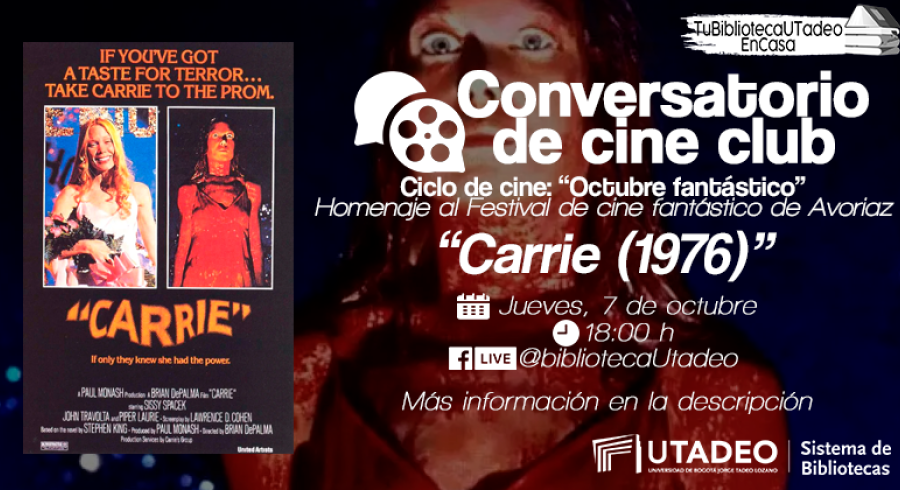 ¿No sabes qué ver? Tu Biblioteca Utadeo te recomienda "Carrie (1976)" y te invita a participar en el Conversatorio de Cine Club en el Ciclo de cine "Octubre fantástico".
