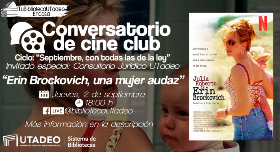 ¿No sabes qué ver en Netflix? Tu Biblioteca Utadeo te recomienda "Erin Brockovich, una mujer audaz" y te invita a participar en el Conversatorio de Cine Club en el Ciclo de cine "Septiembre, con todas las de la ley".