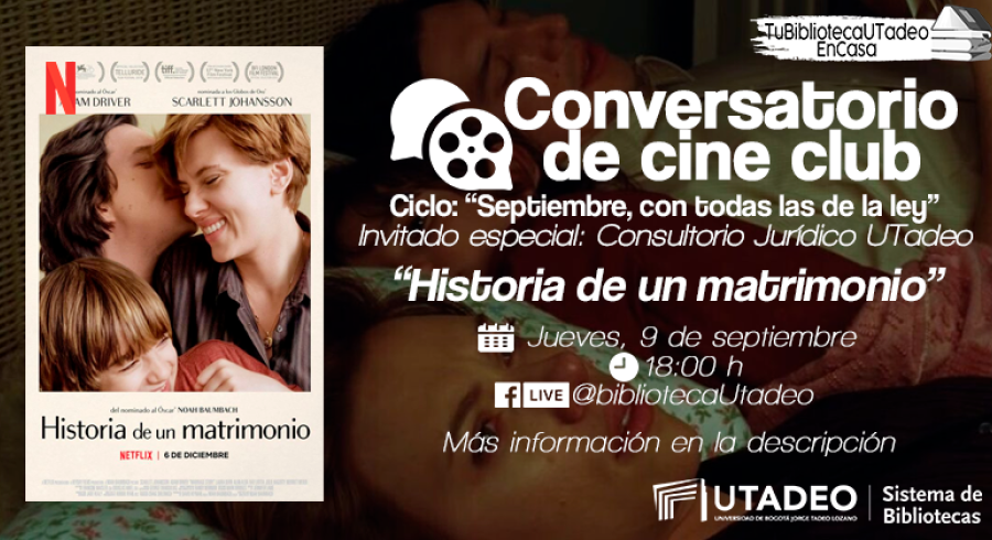¿No sabes qué ver en Netflix? Tu Biblioteca Utadeo te recomienda "Historia de un matrimonio" y te invita a participar en el Conversatorio de Cine Club en el Ciclo de cine "Septiembre, con todas las de la ley".