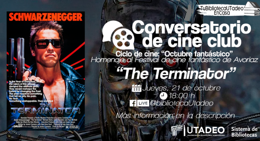 ¿No sabes qué ver? Tu Biblioteca Utadeo te recomienda "The Terminator" y te invita a participar en el Conversatorio de Cine Club en el Ciclo de cine "Octubre fantástico".