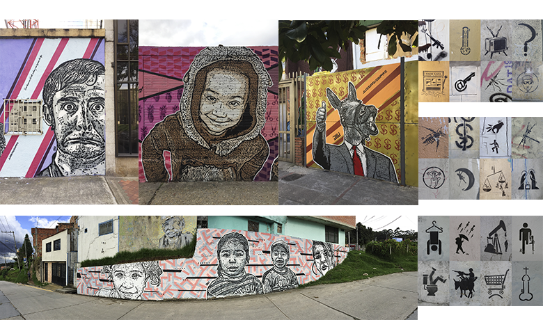 Arquitecto de la universidad Javeriana y Artista plástico de la Universidad Nacional con especialización en fotografía. Viene desarrollando propuestas de arte urbano desde el año 2006, utilizando y perfeccionando primordialmente la técnica del esténcil y apoyado en otros medios como los adhesivos, carteles, sellos, proyecciones, instalaciones y accesorios. Su proyecto Pictogramas nace de la señalética y se plantea como un gesto contra-publicitario. Dos elementos normalmente no relacionados son colisionados a partir de una síntesis gráfica para revelar su poder semiótico y emitir códigos que evidencian situaciones normalmente no reveladas por los medios o conscientemente ignoradas por la mayoría. La serie Orgullo de Calle presenta esténciles basados en fotografías tomadas en su mayoría por el mismo artista. Se consolida como un homenaje a las personas anónimas que viven el espacio urbano de manera directa, y cuyas actividades exaltan el carácter público de la ciudad, generando diversidad y cultura; de igual manera propone a su vez un cuestionamiento en torno a la imposición de ídolos comerciales por parte de la publicidad.
