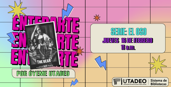 DestacadasEnterArte Compartir en Jueves, Febrero 16, 2023Programación radial por Óyeme UTadeo¡Hoy en EnterArte hablaremos sobre la serie The Bear!The Bear: Disney +, StarChanelTrailer: