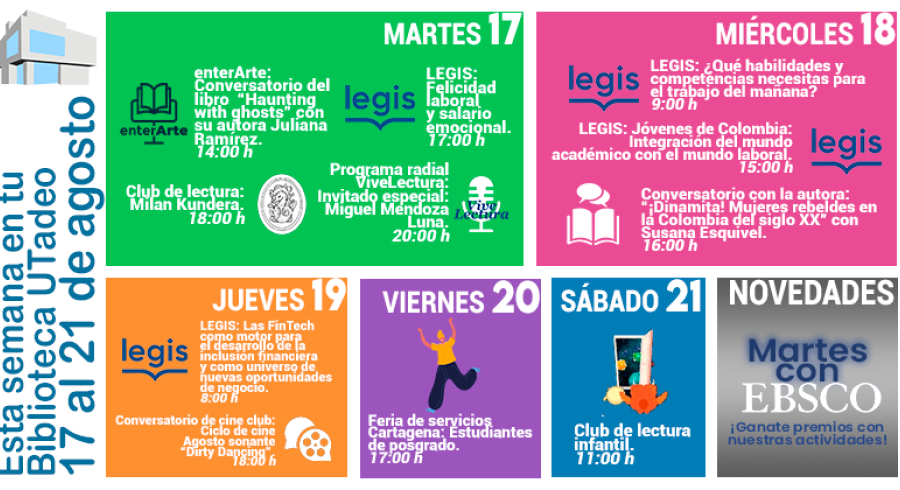 Esta semana en tu Biblioteca UTadeo del 17 al 21 de agosto.