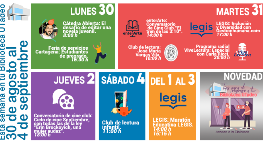 Esta semana en tu Biblioteca UTadeo del 30 de agosto al 4 de septiembre.
