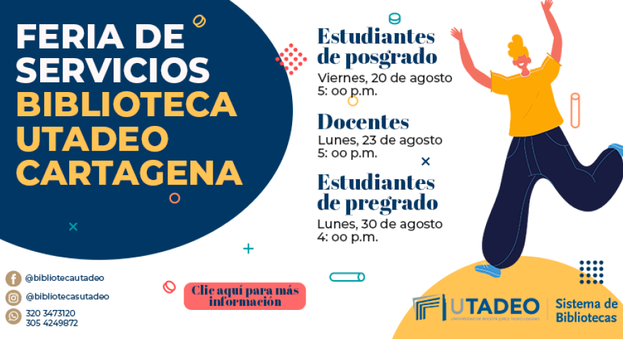 DestacadasFeria de servicios Biblioteca UTadeo Cartagena Compartir en Viernes, Agosto 13, 2021Biblioteca UTadeo Cartagena
