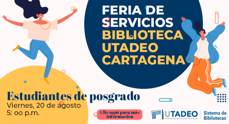 DestacadasFeria de servicios Biblioteca UTadeo Cartagena: Estudiantes de posgrado Compartir en Martes, Agosto 17, 2021Feria de servicios Biblioteca UTadeo Cartagena: Estudiantes de posgrado