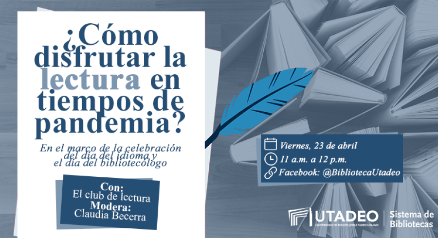 En el marco de la celebración del día del idioma y el día del bibliotecólogo acompáñanos el próximo vieres 23 de abril a las 11:00 a.m. en nuestra charla ¿Cómo disfrutar la lectura en tiempos de pandemia? a través de Facebook @bibliotecautadeo