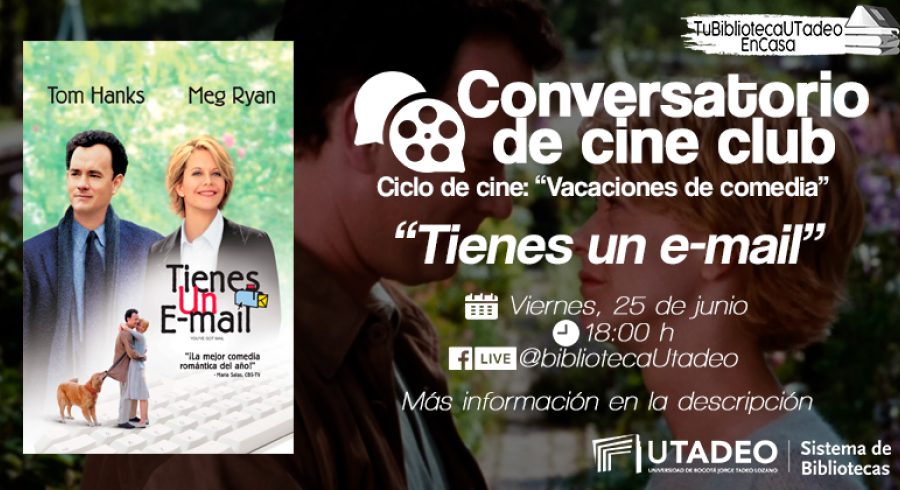 ¿No sabes qué ver en Netflix? Tu Biblioteca Utadeo te recomienda "Tienes un e-mail" y te invita a participar en el Conversatorio de Cine Club en el Ciclo de cine "Vacaciones de comedia".