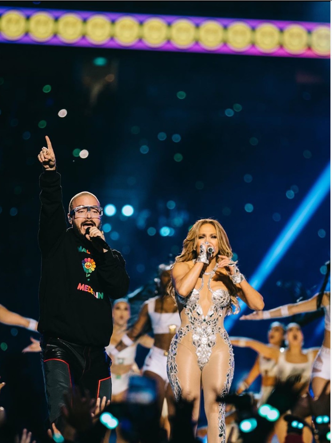 La comunidad Latina, en especial los seguidores de las dos artistas, celebraron la participación de bailarines Colombianos en el show que se llenaría de sonidos africanos y sabor caribeños que representa siempre a shakira en sus bailes. Después de la primera mitad del juego entre los dos finalistas, dió inicio el show de medio tiempo que se llevaría toda la atención. Shakira salió al escenario con un vestido rojo y toda su energía, durante unos minutos compartío escenario con él uno de los artistas urbanos más escuchados Bad Bunny, quien agregó su toque a la presentación que dió paso a la segunda latina de la noche. Jlo realizó su entrada colgada de un poste y compartió escenario con el cantante Colombiano de música urbana J Balvin, la mezcla y el baile sin duda dejó muchas bocas abiertas y aplausos que llenaron las redes sociales.