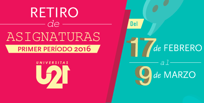 - El retiro de asignaturas lo podrá realizar hasta la sexta semana en el periodo de 16 semanas, previa solicitud al Decano o Director de Programa y aprobación de éste (Artículo 19° del reglamento estudiantil).