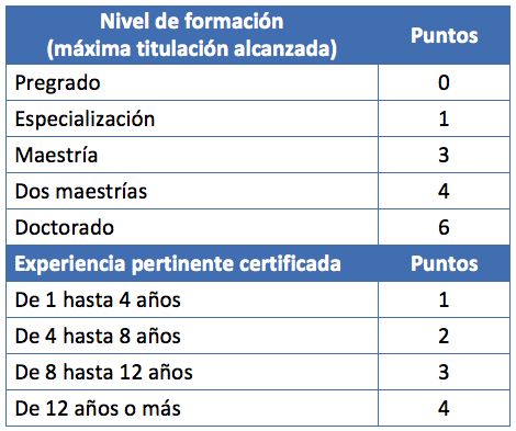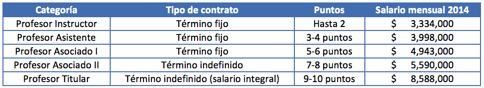 Las categorías en la carrera profesoral están dadas de acuerdo con el siguiente sistema de puntos:
