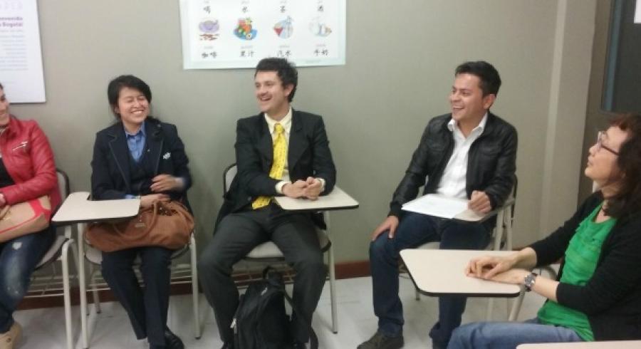 Los 14 estudiantes del Instituto Confucio UTadeo que viajarán a China el próximo 23 de mayo ya empezaron su preparación con una charla en compañía de la directora Li Siqing y Mónica Torres, quienes acompañarán a este grupo en su experiencia. Puntos importantes como conocerse entre ellos, qué esperar del campamento y la convivencia fueron algunos temas que conversaron entre risas, expectativa y un poco de nervios. La música también estuvo a la orden del día, pues antes de llegar a Tianjin nuestros chicos tienen que preparar un baile que represente a Colombia y una canción en chino.
