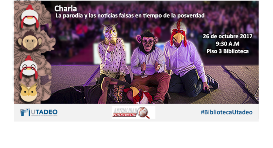 La biblioteca de la Universidad Jorge Tadeo Lozano realizará una charla con Actualidad Panamericana donde se hablará sobre la parodia y las noticias falsas en tiempo de la posverdad. Esta charla se llevará a cabo el día jueves 26 de octubre a las 9:30 a.m. en el tercer piso de la biblioteca; al terminar la charla se realizará la firma de autógrafos en su libro “Actualidad Panamericana El Libro”.