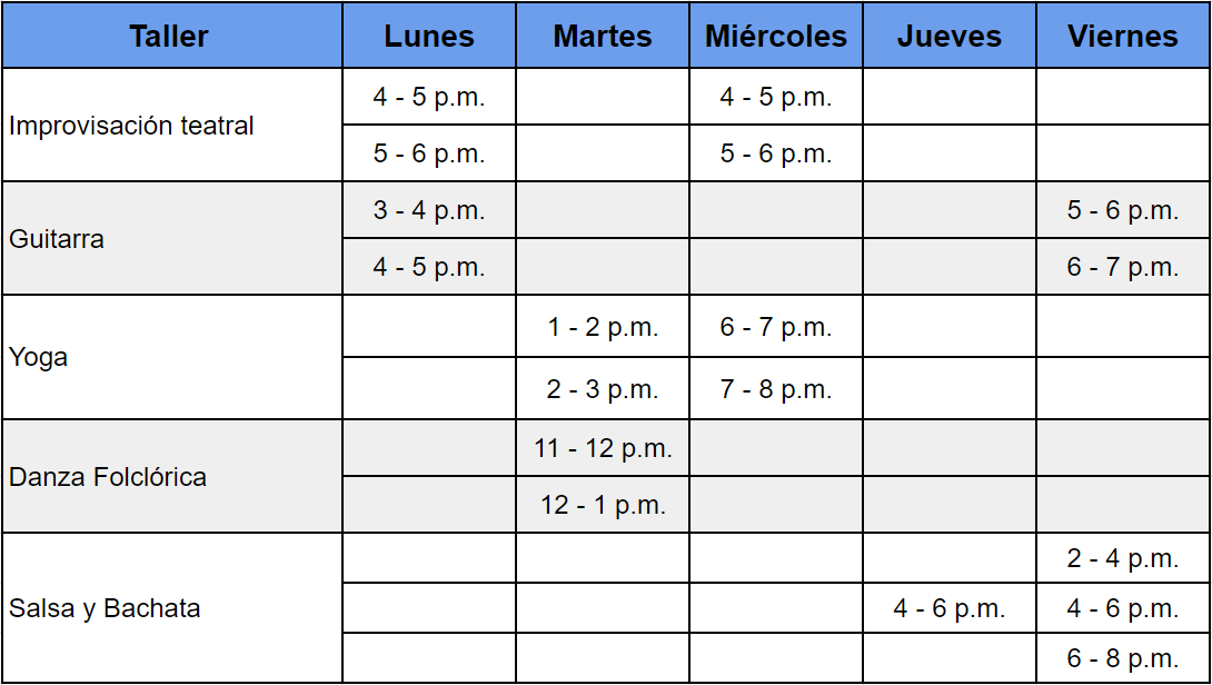 Y para este primer semestre de 2022, cuando se está volviendo a la tan anhelada normalidad con una oferta más enfocada a compartir con nuestros amigos y compañeros manteniendo un espacio de reflexión, acercamiento con nuestro entorno, con el cuerpo, mente, emociones, y sensibilidades, estimulando los talentos que permiten afianzar valores socio-culturales y que contribuyen al desarrollo personal estimulando el pensamiento crítico y competencias blandas.