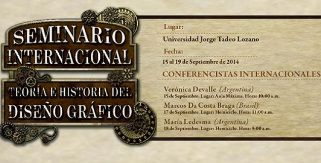 La Decana del Programa de Diseño Gráfico de la Universidad Jorge Tadeo Lozano, extiende una cordial invitación al Segundo Seminario Internacional de Teoría e Historia del Diseño Gráfico, entre los días 15 y 19 de septiembre de 2014 en las instalaciones de la Universidad. Los temas centrales del evento son la Historiografía del diseño, el Diseño social y la Comunicación visual, alrededor de los cuales se expondrán algunas de la investigaciones que actualmente se están llevando a cabo en diferentes universidades iberoamericanas.
