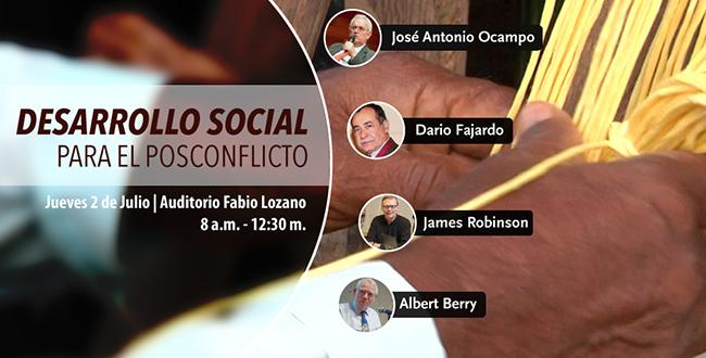 Dada esta coyuntura, el próximo 2 de julio en el Auditorio Fabio Lozano de Utadeo, a partir de las 8:00 a.m. se llevará a cabo el foro “Desarrollo social para el posconflicto” organizado por la Facultad de Ciencias Económicas y Administrativas de Utadeo en conjunto con Fedesarrollo. El evento reunirá las voces de los protagonistas y especialistas en el tema, entre ellos James Robinson, quien expondrá más a fondo su tesis. Junto a él, estarán como panelistas Darío Fajardo, José Antonio Ocampo, Albert Berry y Leonardo Villar, quienes desde distintas ópticas controvertirán la hipótesis de Robinson. El debate será moderado por el reconocido economista y profesor emérito de Utadeo, Salomón Kalmanovitz.