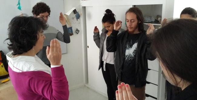 El pasado 12 de marzo se llevó a cabo el taller ESPACIO, CUERPO, MOVIMIENTO a cargo de la artista Beatriz Eugenia Díaz. Este fue el primer taller ofrecido por la electiva ENLACES: enlas artes, enlas ciencias, abierto al público en general. ENLACES es un espacio experimental, dirigido por las profesoras Ana María Campos (Departamento de Ciencias Básicas) y Natalia Kempowsky (Programa de Artes Plásticas).