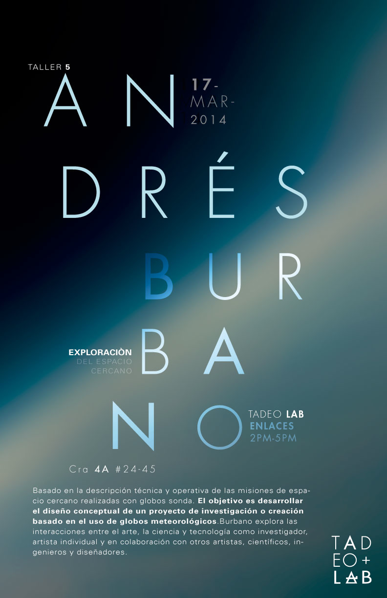 El lunes 17 de marzo, el espacio ENLACES: enlas artes, enlas ciencias (TadeoLab), invita a participar en el taller EXPLORACIÓN DEL ESPACIO CERCANO, a cargo del artista Andrés Burbano.