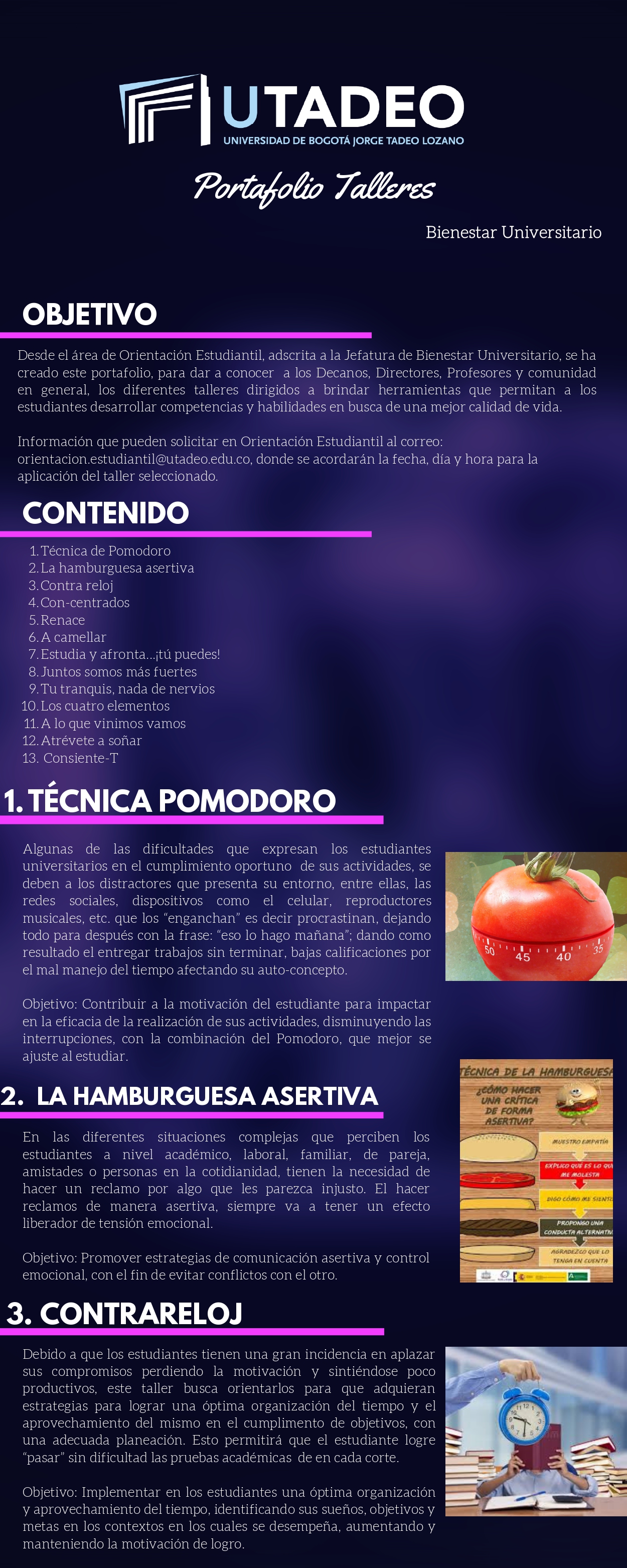 Si eres estudiante tadeísta, desde ya puedes consultar el portafolio de talleres que Bienestar tiene para ti e ir programando con tiempo a cuáles te quieres inscribir.