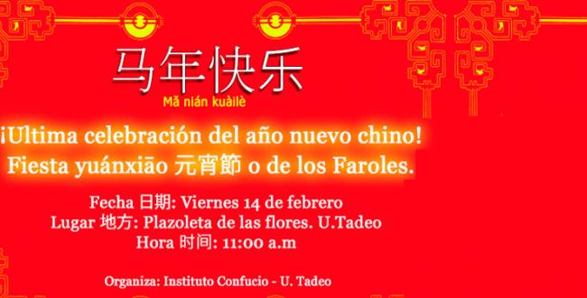 El Instituto Confucio de la Universidad Jorge Tadeo Lozano invita a celebrar el año nuevo chino, el Año del Caballo, que comenzó el 31 de enero. Las celebraciones tradicionales terminan el 14 de abril, a las dos semanas, con la Fiesta de los Faroles.