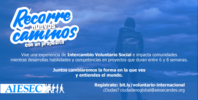 Para resolver sus dudas, puede contactarnos a: practicas@aiesecandes.org o al celular: 318 793 4766.