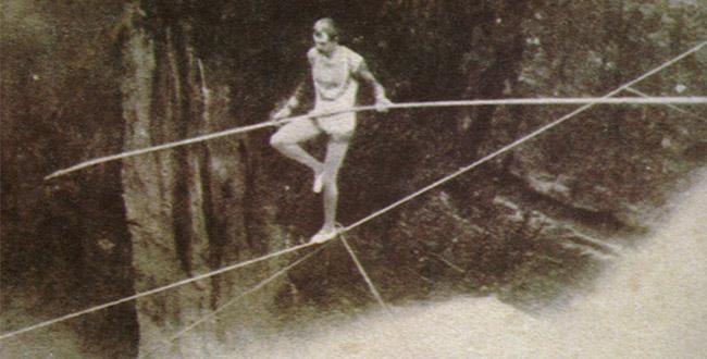Harry Warner atravesando El Salto del Tequendama 1895 / Fotografía de Henry Duperly / Copia en Albúmina 22,5 x 13.5 CM / Archivo de Henry Barbosa