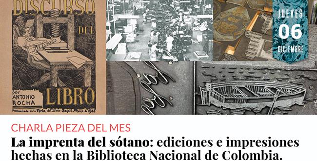 A propósito de ello, el próximo jueves 6 de diciembre, a partir de las 6:00 p.m., en el Auditorio Aurelio Arturo de la Biblioteca Nacional (Calle 24 No. 5-60), se desarrollará la charla “Imprenta del sótano: ediciones e impresiones hechas en la Biblioteca Nacional de Colombia”, en el espacio conocido como “La pieza del mes”.
