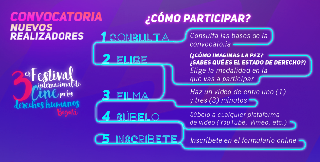 La convocatoria está dirigida a estudiantes de diferentes disciplinas y aficionados de la realización audiovisual que aporten a la construcción de ideas para la paz contándole al mundo cómo se imaginan la paz y cuál es su percepción sobre el Estado de Derecho.