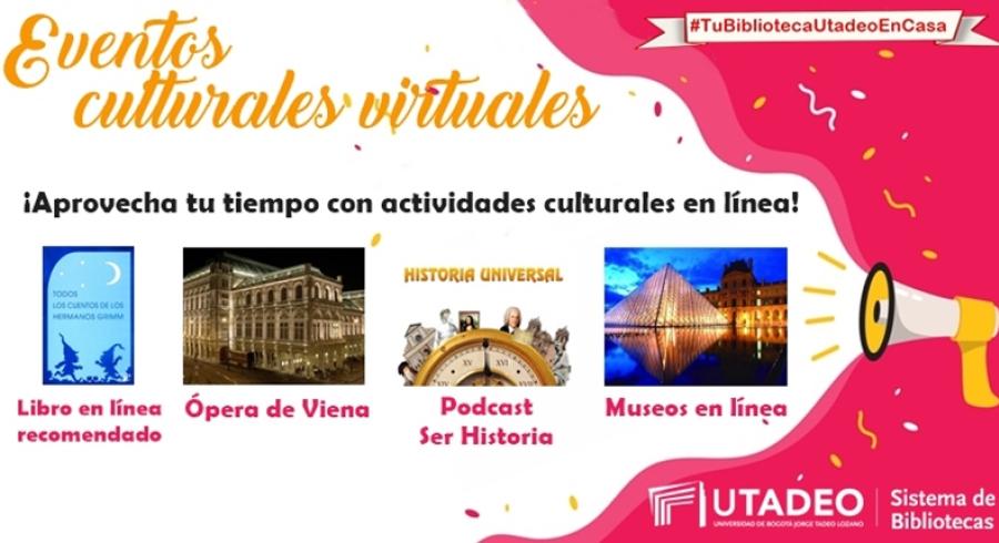 Sabemos que extrañas nuestros eventos culturales y por esto tu Biblioteca Utadeo trae a un clic los mejores eventos culturales a nivel mundial para que aproveches tu tiempo libre y en familia.