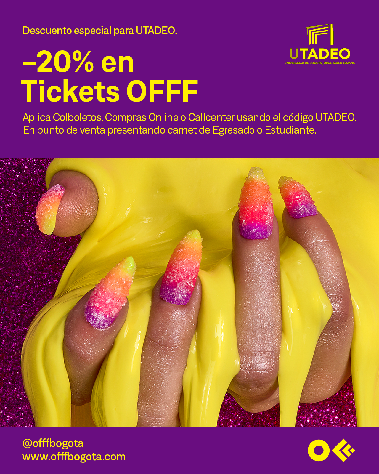 OFFF el icónico festival internacional de arte, diseño y creatividad digital llega a Colombia desde Barcelona para conmemorar sus 20 años de historia con la primera versión de OFFF Bogotá, la cual se llevará a cabo este 12 y 13 de marzo en Ágora y le pondrá cita a miles de personas interesadas en el cine, televisión, animación, videojuegos, fotografía, tecnología, publicidad, entre muchas otras áreas de la industria creativa.