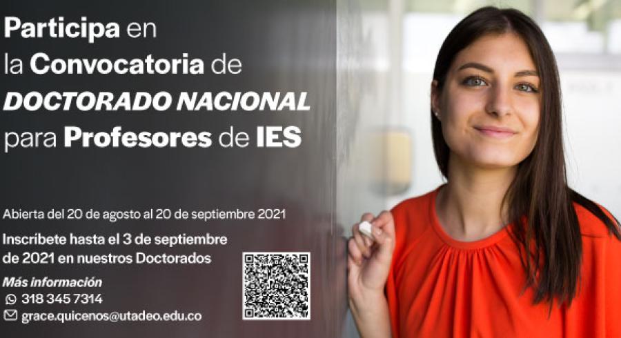 La convocatoria está abierta del 20 de agosto al 20 de septiembre 2021. Está dirigida a Profesores de planta (tiempo completo o medio tiempo), profesores de cátedra u ocasionales de Instituciones de Educación Superior colombianas que estén admitidos o estudiando un programa de doctorado con registro calificado vigente del Ministerio de Educación Nacional.