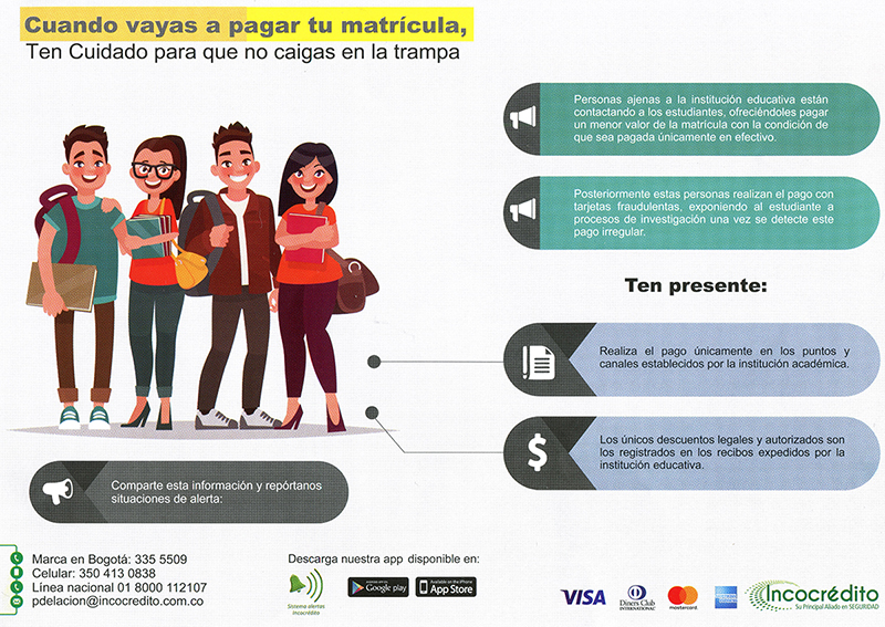 Incocrédito y las principales franquicias de crédito están alertando a todos los estudiantes sobre la utilización fraudulenta de tarjetas de crédito para el pago de sus matrículas en las universidades.