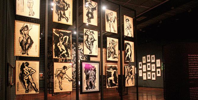 En la exposición se presentan más de doscientas piezas, entre grabados, pinturas, dibujos y objetos personales del artista, organizadas en cinco secciones: “Cuerpo femenino”, “Ciclo vida-muerte”, “Celebración de la tragedia”, “Los pájaros del alma” y “Contemplación”. Las cuatro primeros grupos se exhiben en el Museo Nacional y el quinto, en el Museo de Artes Visuales (MAV).