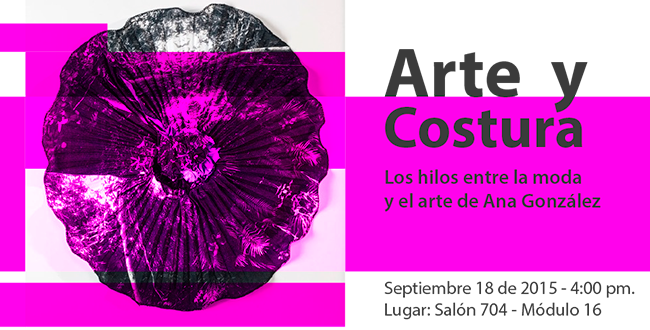 El Programa Diseño y Gestión de la Moda, presenta el próximo 18 de septiembre a las 4:00 p.m., en el Salón 704 del Módulo 16 de Utadeo, a la artista Ana González, quien hablará de su experiencia y recorrido como productora fotográfica para revistas y fotógrafos en París, en la Casa Editorial Hachette Filipacchi (Revista Elle Paris) y Casa Editorial Rizzoli (Milán), y su relación con su obra artística que habla del vestido desde la problemática del desplazamiento y de la feminidad. El tema girará también en torno a la historia del arte, la cual ha estado siempre ligada a la historia de la moda y la alta costura.
