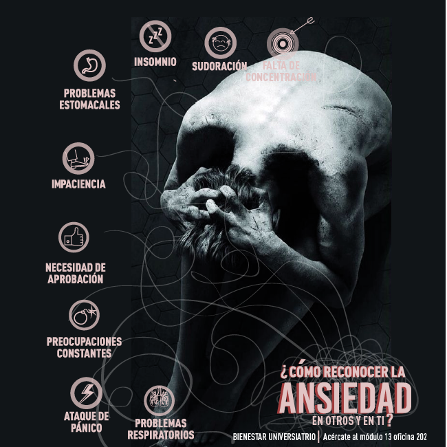 La ansiedad puede estar presente de manera diaria en la vida de un estudiante: llegar tarde a una cita, la presentación de un examen, la exposición de un proyecto importante, pueden ser causantes de su ansiedad y estas situaciones pueden volverse repetitivas provocando así un trastorno conocido como ansiedad generalizada. Además, un aumento de estos niveles de ansiedad pueden convertirse en trastornos de pánico.