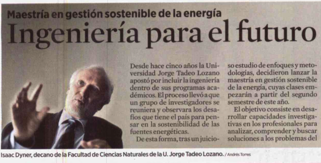 “Al terminar, los egresados estarán en la capacidad de desempeñarse en diferentes ámbitos: como asesores de gobierno en la planeación y utilización eficaz de los recursos naturales" señaló el decano de la Facultad de Ciencias Naturales e Ingeniería, Isaac Dyner, en entrevista para El Espectador.