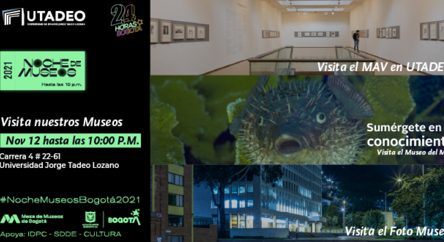 Diferentes medios de comunicación han invitado a participar de esta actividad organizada desde la Mesa de Museos de Bogotá, con el apoyo de la Alcaldía Mayor de Bogotá, la Secretaría de Cultura, Recreación y Deporte, el Instituto Distrital de Turismo, la Secretaría de Desarrollo Económico, el Instituto Distrital de Patrimonio Cultural y el Museo de Bogotá; y Utadeo se une a este importante evento con tres grandes espacios cargados de mucha cultura y entretenimiento, y que todos podrán visitar gratis: El Museo del Mar, El Museo de Artes Visuales -MAV- y El FotoMuseo.