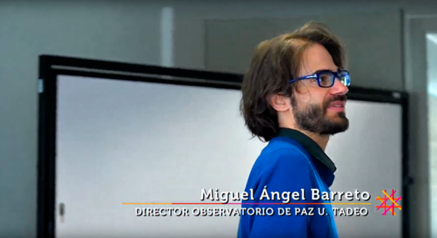 Este es el escenario de una clase de Análisis de Conflictos y Construcción de Paz, dictada por el profesor Barreto, quien es además el director del Observatorio de Construcción de Paz de la Universidad. En esta clase se formulan preguntas sobra la terminación de un conflicto armado, los procesos de paz, los mecanismos de justicia transicional y elementos como la reparación a las víctimas y la no repetición de los crímenes.