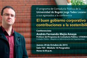 RecomendadosOctubre 27 / 2015El Programa de Contaduría Pública de Utadeo invita a los egresados tadeístas a que se actualicen en temas relacionados con el buen gobierno corporativo y la sostenibilidad en las organizaciones.
