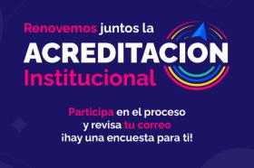 DestacadasAgosto 24 / 2022Iniciamos nuestro proceso de Renovación de la Acreditación Institucional de Alta Calidad. En esta primera fase tu participación es muy importante, apóyanos respondiendo la encuesta que llegará a tu correo.