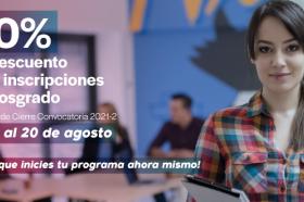 DestacadasAgosto 12 / 2021Aprovecha la Feria de Cierre de Convocatoria 2021-2 con descuento del 30% en el valor de tu inscripción. Inscríbete y estudia con nosotros.