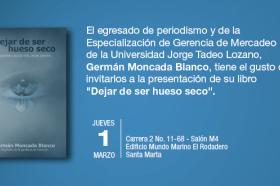 Prográmese en la UtadeoFebrero 28 / 2018El egresado de periodismo y de la Especialización de Gerencia de Mercadeo de la Universidad Jorge Tadeo Lozano, Germán Moncada Blanco, presentará su libro el Jueves 1 de Marzo de 2018 a las 7 p.m. en el salón M4.