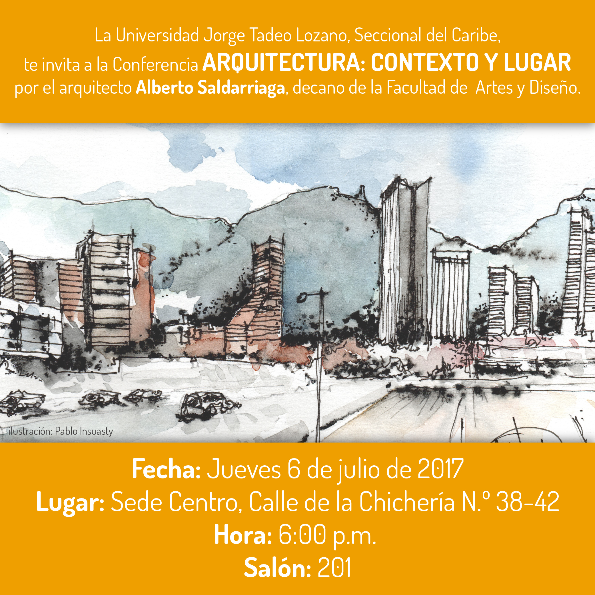 ConferenciaConferencia "Arquitectura: contexto y lugar". Por Alberto SaldarriagaFecha del evento: Jueves, Julio 6, 2017 - 18:00 Compartir en LugarSede centro Utadeo, Calle de la Chichería #38-42Entrada libre arqui-05.jpg