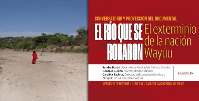 El viernes 21 de octubre, la Facultad de Ciencias Sociales tendrá el conversatorio y la proyección del documental “El río que se robaron: el exterminio de la nación Wayúu”, que contará con la participación de Sandra Borda, decana de la Facultad, Gonzalo Guillén, director del documental, y Carolina Sáchica directora del Consultorio Jurídico y abogada de la comunidad Wayúu. El evento se realizará a las 11:00 a.m. en la sede centro de la Universidad Jorge Tadeo Lozano, ubicada en la calle de la Chichería Nº 38-42.